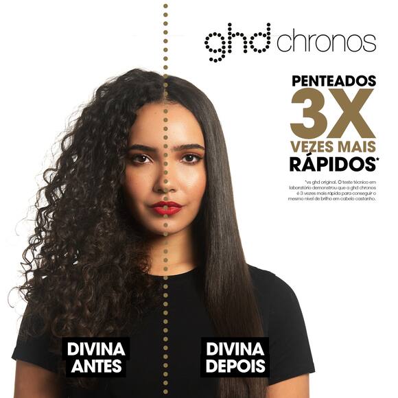 *em comparação com o ghd original. Teste técnico em laboratório mostra que o ghd chronos é 3 vezes mais rápido para alcançar o mesmo alto nível de brilho em madeixas morenas. **Em comparação com o ghd platinum+
