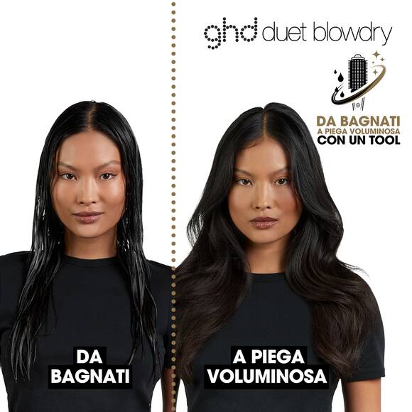 Nuova spazzola asciugcapelli 2-in-1 ghd duet blowdry, per capelli da bagnati in piega senza danni termici* e 3x più volume**.