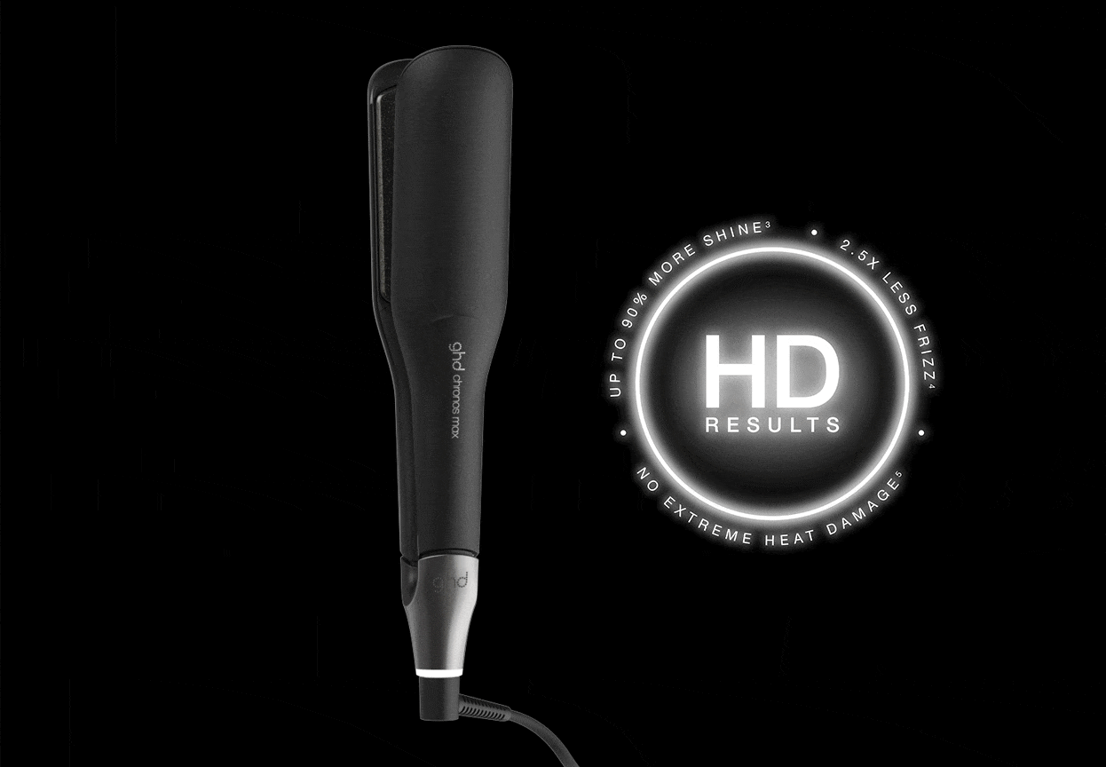 Introducing the ghd chronos max, our professional HD motion-responsive™ wide plate styler, designed for high-definition styling that's 2x more responsive⁴ for 3x faster² results. Our best wide plate straightener, perfect for transforming long, thick, and curly hair in just one stroke with no extreme heat damage¹⁰.