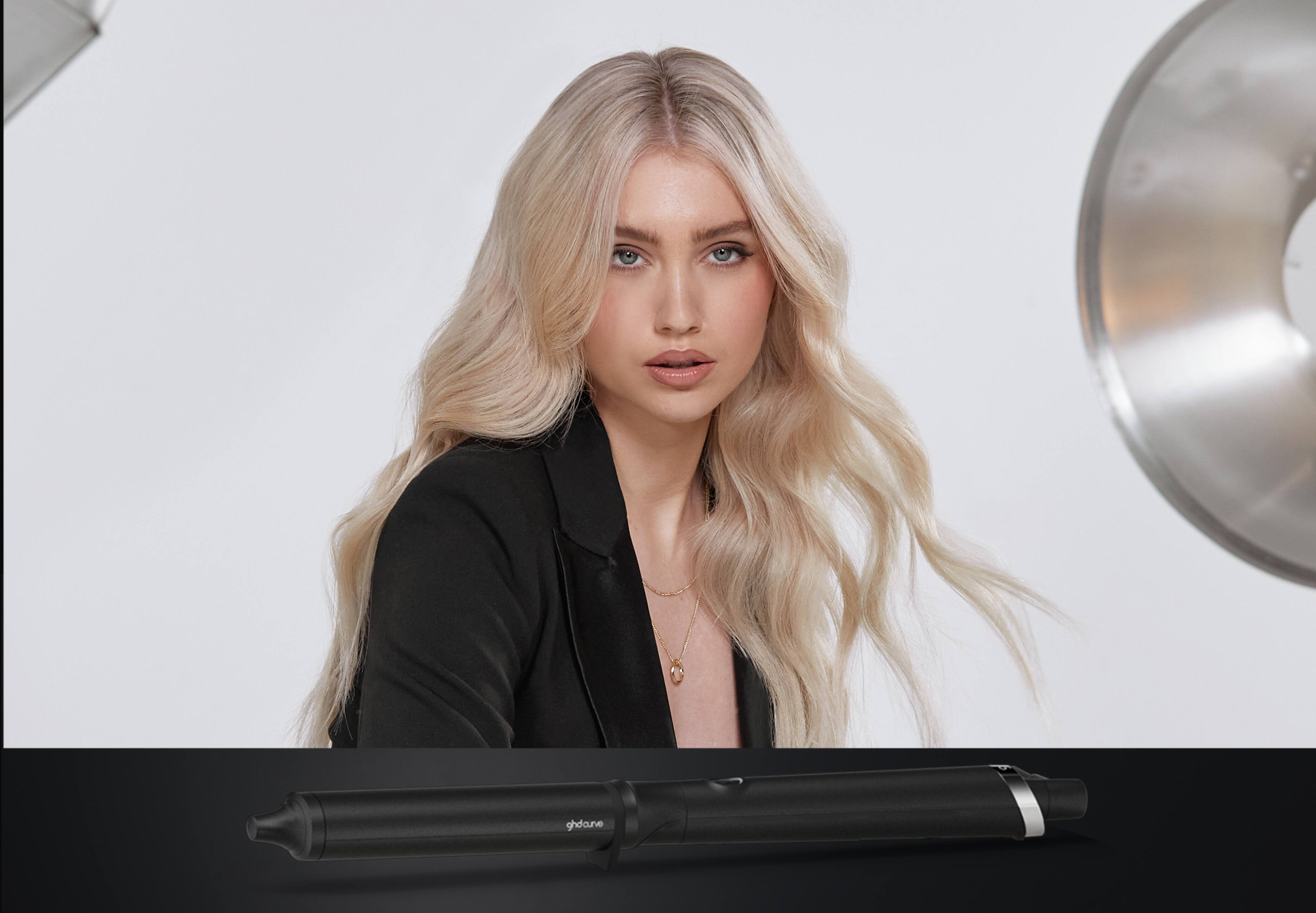 Muotoiluvinkki: Valmistele hiukset ennen kihartamista ghd curl hold spray -suihkeella. Se suojaa hiuksia kihartimen kuumuudelta ja varmistaa lisäksi kiharoiden kestävyyden. Sileä, ylellinen look: kiharra kaikki hiussuortuvat samaan suuntaan. Tuuheampi look: kierrä hiussuortuvat vuorotellen kiharrinosan ala- ja yläpuolelta luodaksesi kiharat, jotka kimpoilevat toisistaan. Käytä ghd-selvityskampaa hiusten pehmittämiseen tai ghd-kampausharjaa kiharoiden silottamiseen.