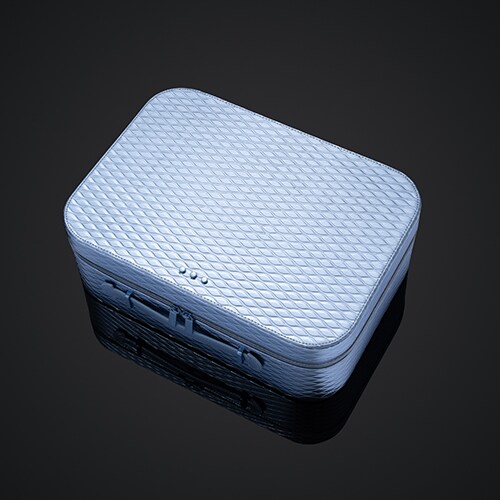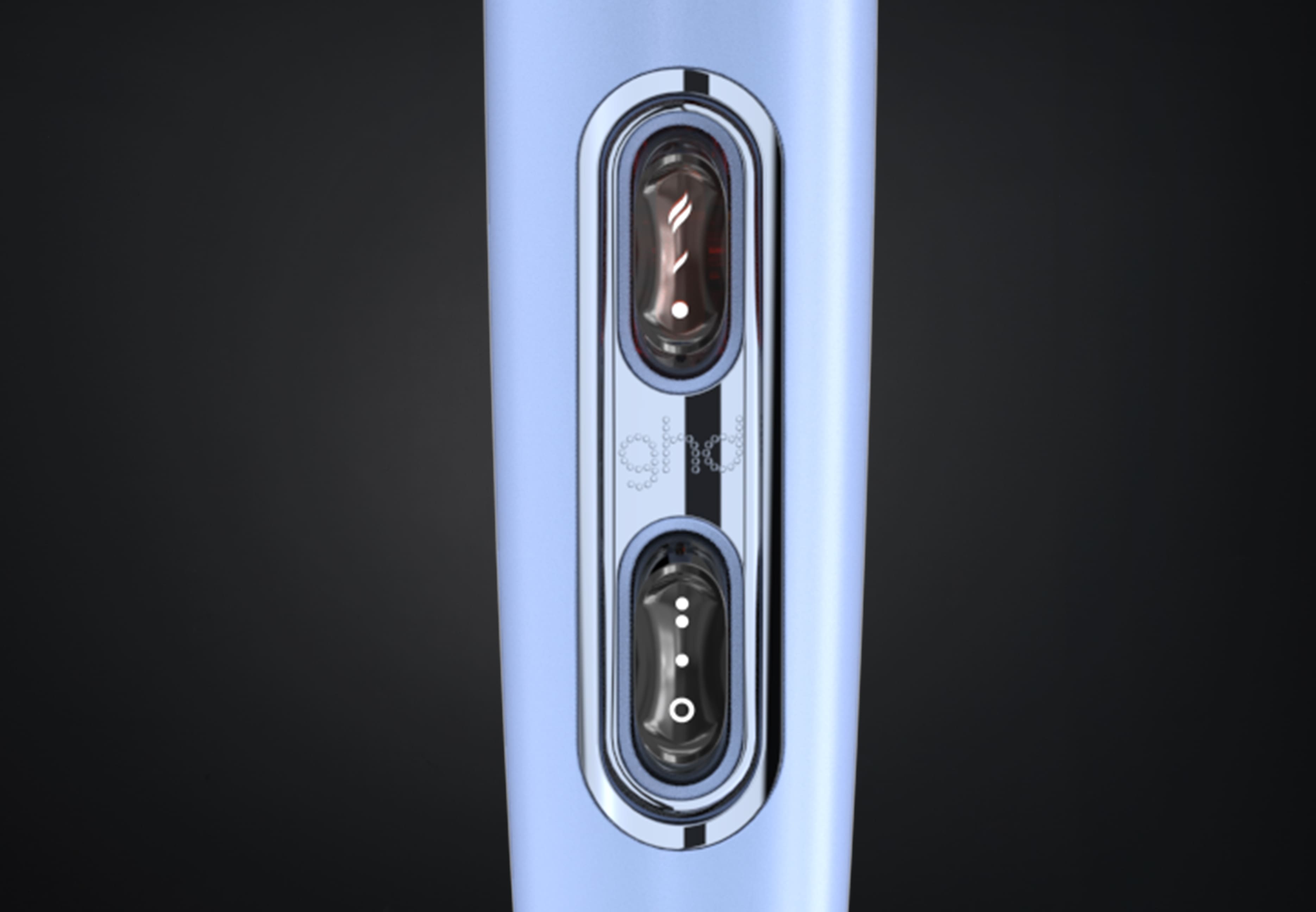 Αποθηκεύστε το συλλεκτικό σας styler και σεσουάρ σε μια κομψή θήκη σε λαμπερή, κρυστάλλινη μπλε απόχρωση.