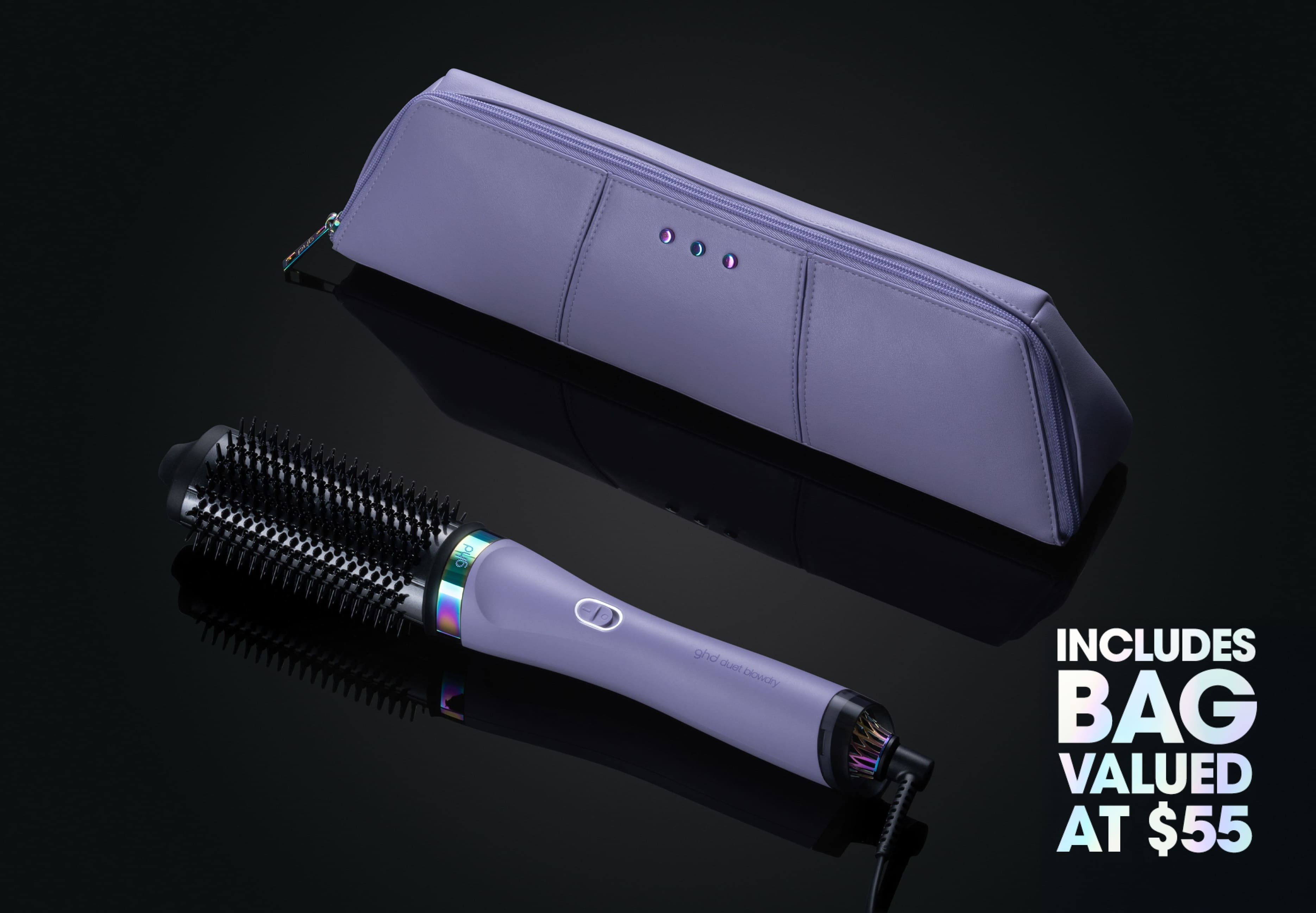 ghd duet blowdry hair dryer brush has been encased in a cosmic galactic lilac hue accompanied by a matching heat resistant bag² (valued at $55).