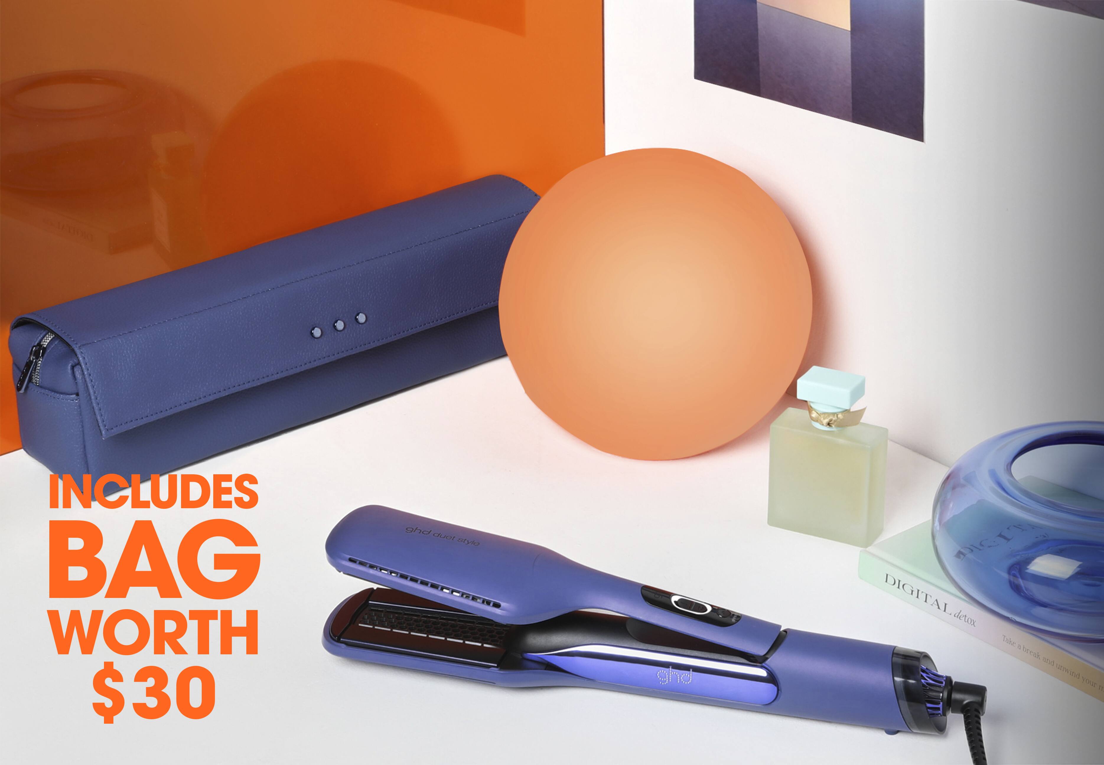 Bring the confidence to channel good hair days that look good on screen and IRL with the ghd duet style in elemental blue and it's matching heat-resistant bag².