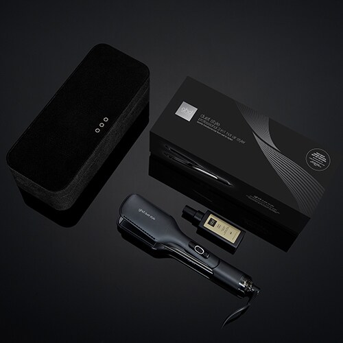 Completa il tuo kit di styling con la nuovissima piastra per capelli bagnati ghd duet style, l'olio di argan ghd sleek talker e un lussuoso cofanetto in velluto.