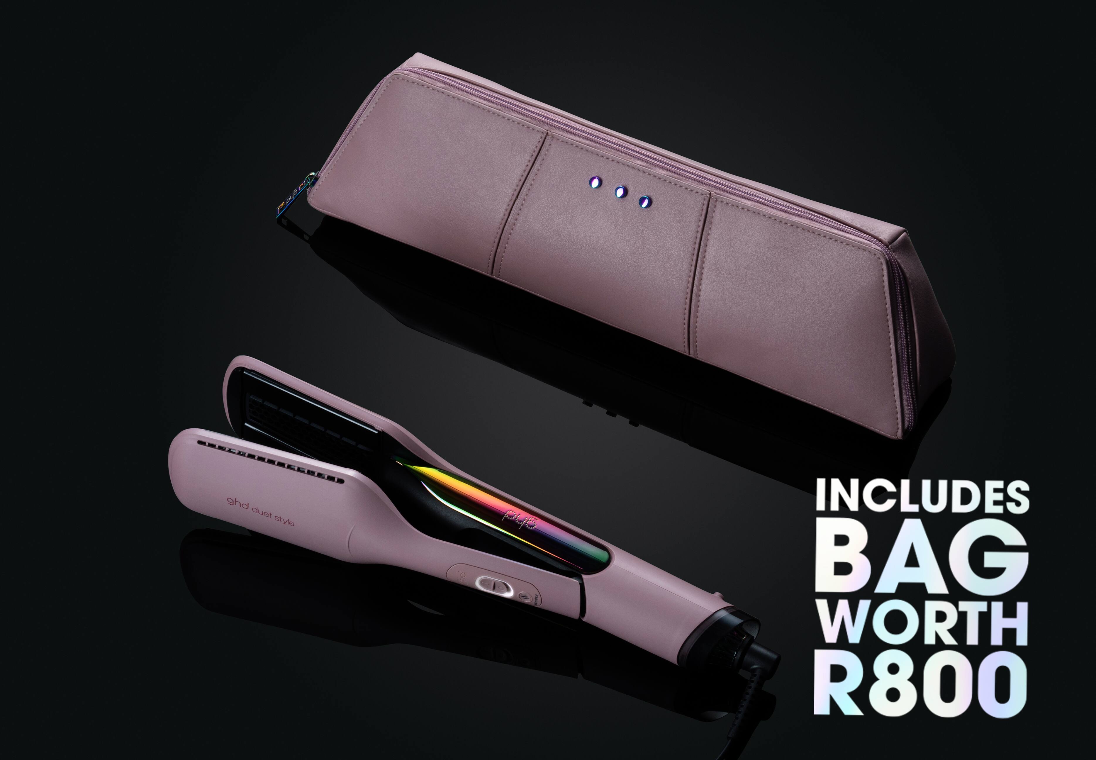 ghd duet style hot air styler has been encased in an ethereal transcendent pink hue accompanied by a matching heat resistant bag³ (worth R800).