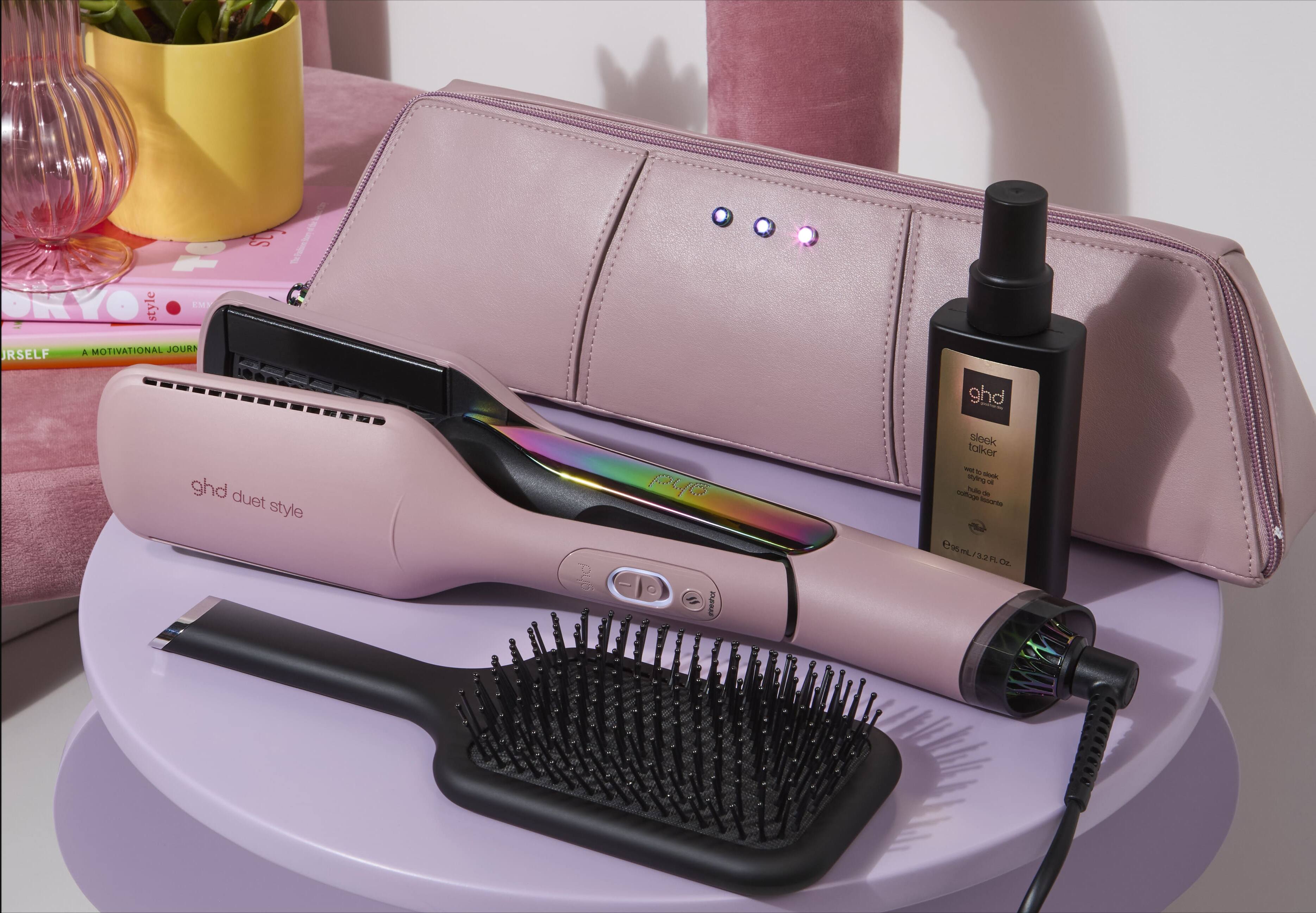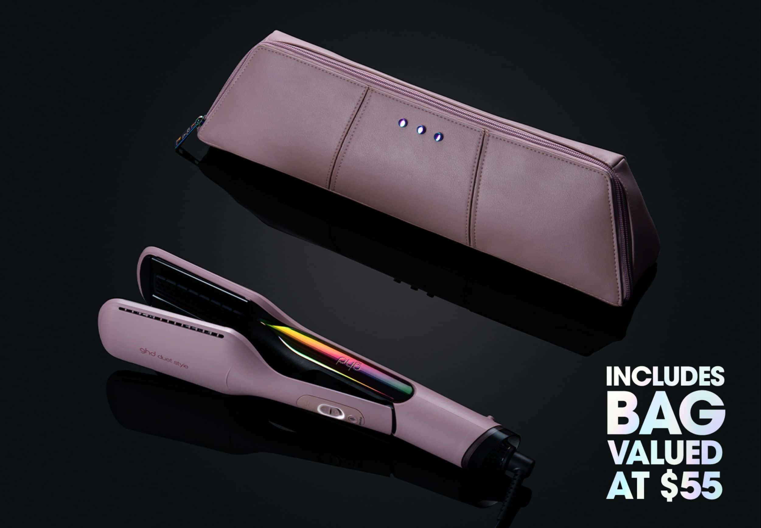 ghd duet style hot air styler has been encased in a ethereal transcendent pink hue accompanied by a matching heat resistant bag³ (valued at $55).