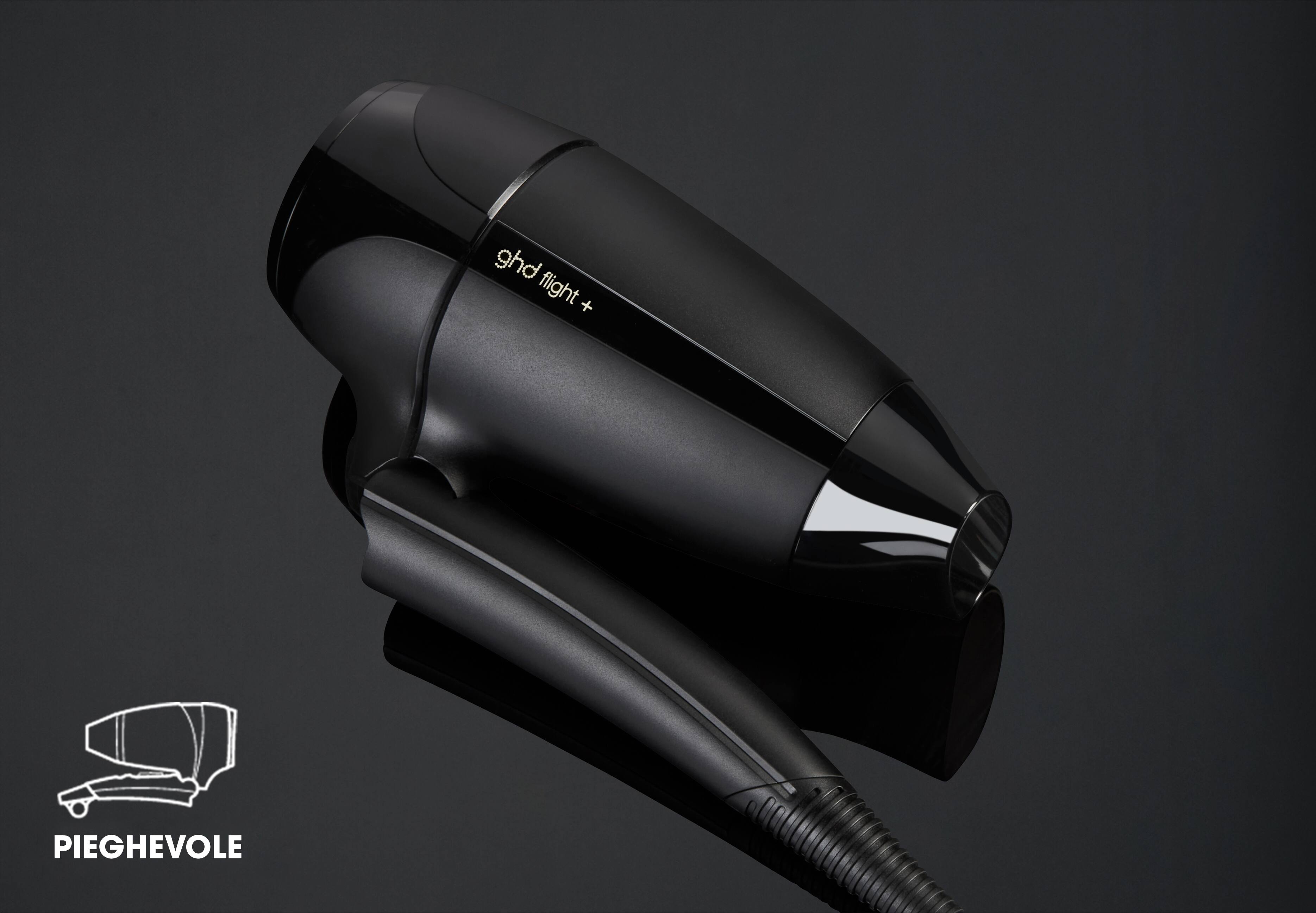 Realizzato per farti recuperare spazio, ghd flight+ è pieghevole ed ergonomico. Rispetto ad un asciugacapelli di dimensioni standard**, è il 25% più piccolo e il 49% più leggero, ideale da portare nella valigia quando viaggi. Regola la velocità e la temperatura per una flessibilità di styling costante.