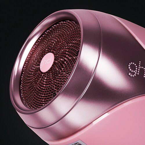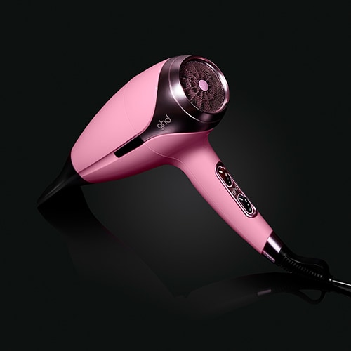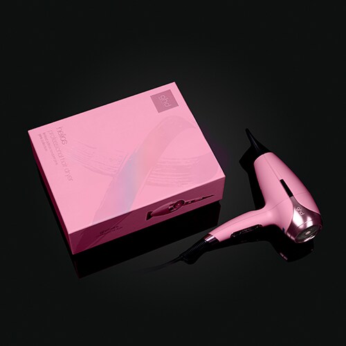 Χαρείτε το limited edition σεσουάρ ghd helios σε απόχρωση ροζ φοντάν που έρχεται μαζί με το ειδικά διαμορφωμένο επαγγελματικό στόμιο.