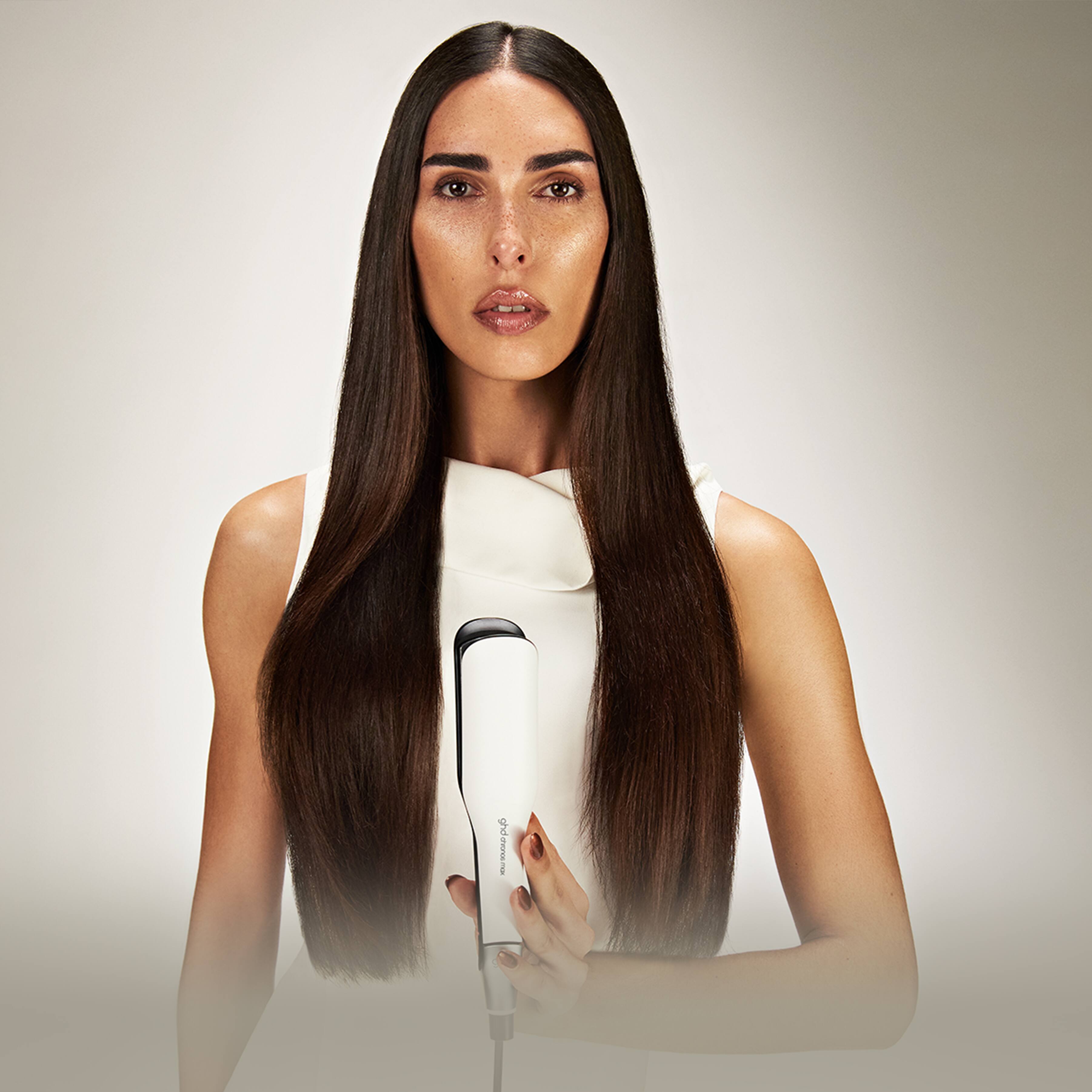 Per chi ha capelli lunghi, spessi e ricci, la nuova piastra per capelli larga ghd Chronos Max garantisce styling 3x più veloci⁴ in una sola passata, con risultati HD che durano 24 ore⁵. Le piastre più grandi dell'85%⁶ e con bordi più sottili sono perfette per uno styling impeccabile dalle radice alle punte.