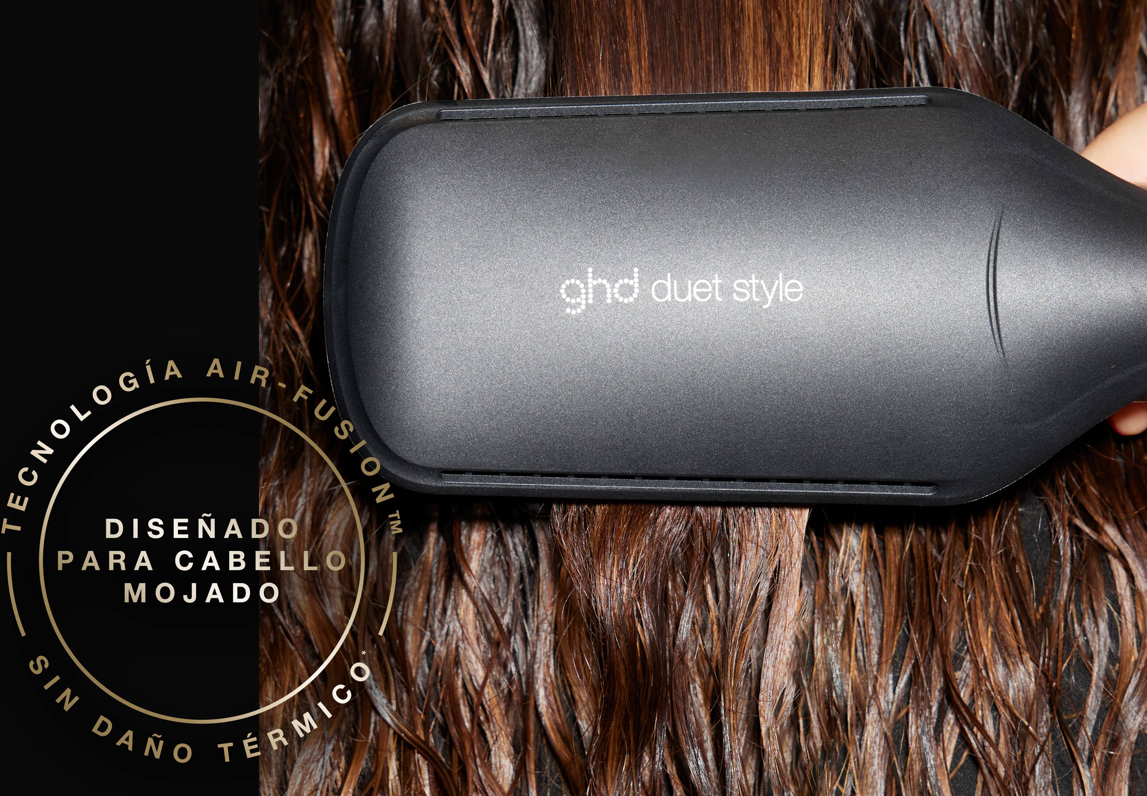 - plancha de pelo de aire caliente 2 en 1 ghd duet negra