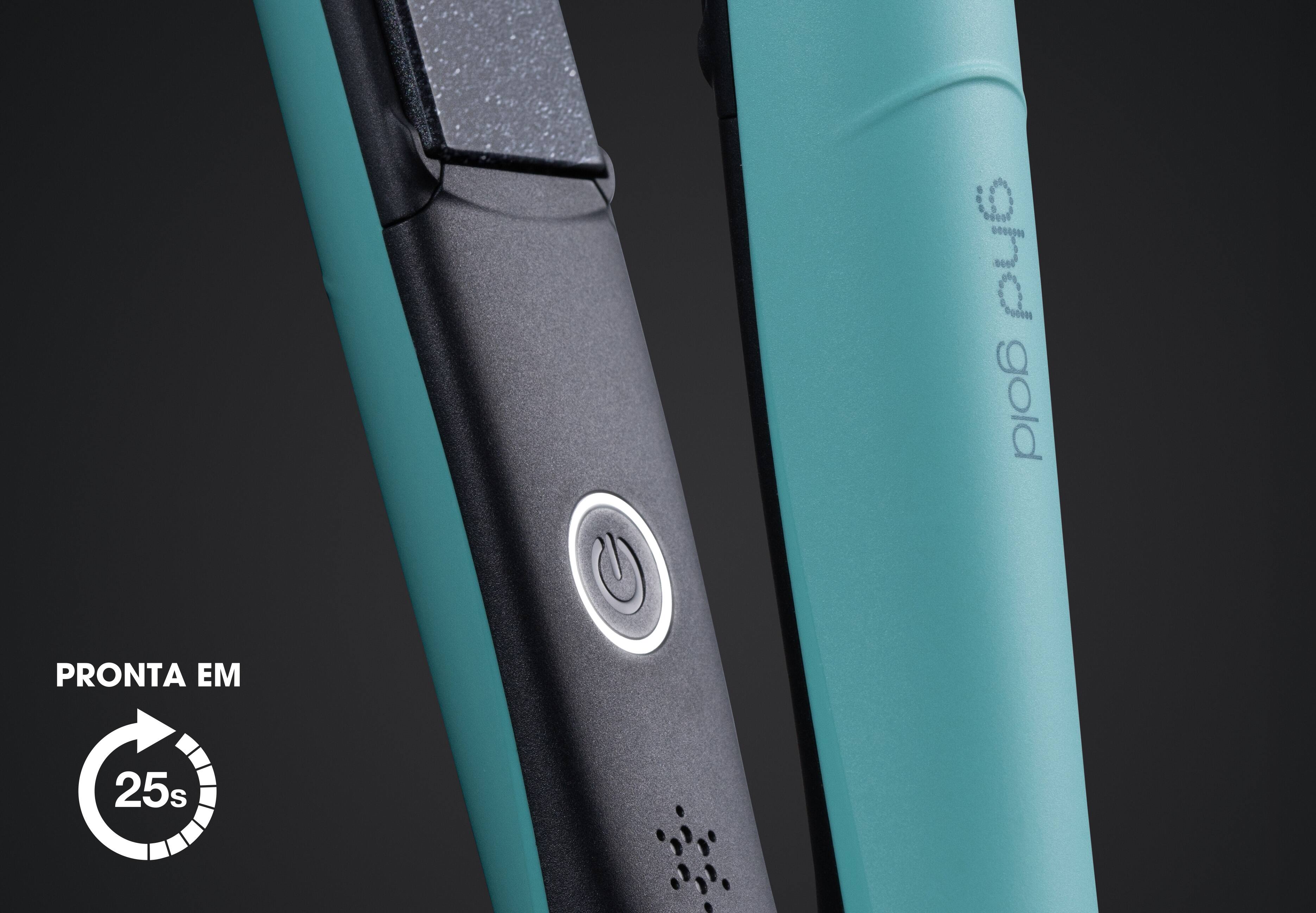 Projetada para inspirar individualidade e potencializar a tua criatividade de styling, a ghd Gold® une beleza e tecnologia de forma impecável. Numa hipnotizante edição limitada em acabamento azul turquesa com detalhes furta-cor³, a ghd Gold® vem acompanhada de um necessaire resistente ao calor a condizer², tornando-se o par perfeito para o teu styling.
