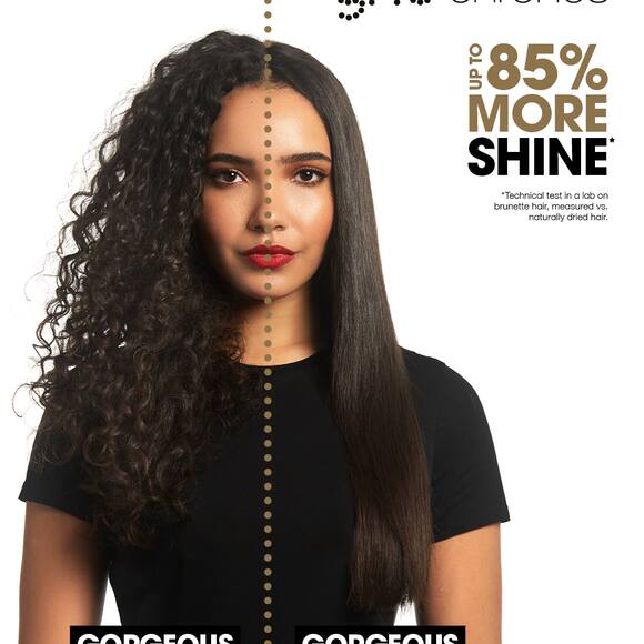 Shine Shot™ kun for tørt hår: 2x mer glans****, krusfritt hår og 3,5x mer hårjustering
