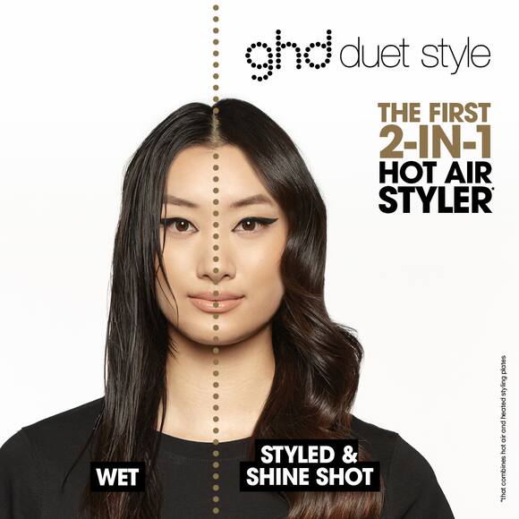 Den første 2-i-1 varmluftsstyleren* som forvandler håret fra vått til stylet uten varmeskader**